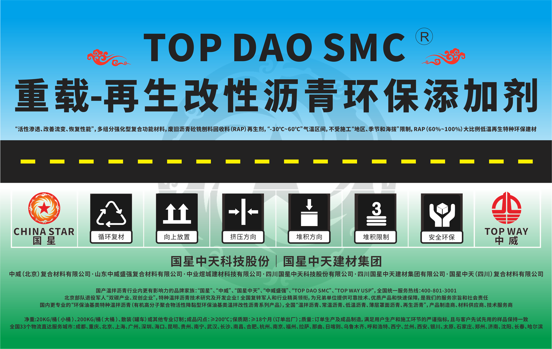 ,更多的贴心服务。国星中天以"SMC"为代表的“有机降黏型(油基类)特种温拌沥青”技术,一直在优化,一直在沉淀,一直在进步